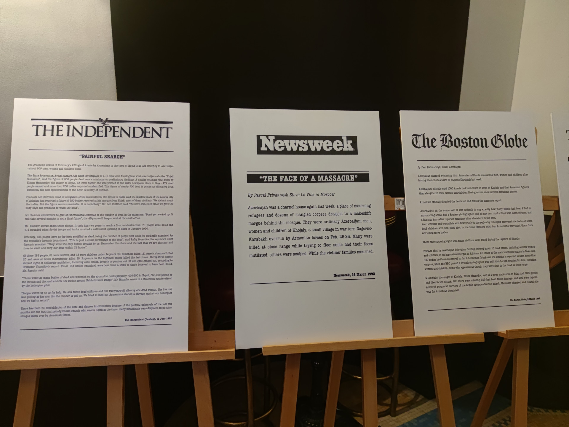 Dans le cadre d’un conflit armé qui avait déjà pris forme, la bourgade de Khodjaly s’est trouvée assiégée par les milices arméniennes. C’est au cours de l’assaut final que fut commis ce massacre contre les infortunés civils qui étaient pris au piège. Le déchaînement de violence aveugle qui s’est abattu sur des populations désarmées, âgées, des enfants en bas âge a laissé sans voix les observateurs étrangers qui se sont rendus sur les lieux juste après les événements. 613 cadavres de vieillards, de femmes et d’enfants ont été comptabilisés et 150 disparus, dont le sort est encore inconnu à ce jour. De nombreux corps ont été trouvés mutilés. Une violence cruelle sans freins. Une grande fête barbare du sang, une cérémonie de la souffrance et de la mort.