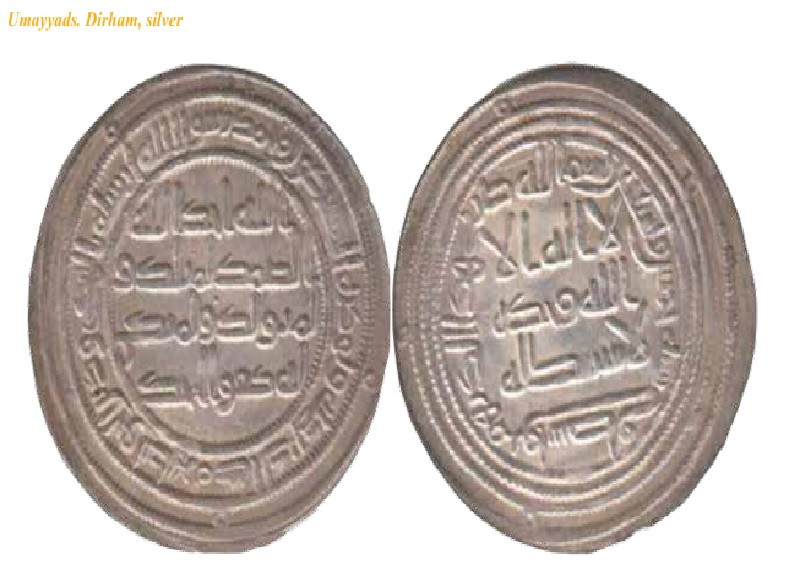 Les inscriptions calligraphiques sont également fréquentes sur les pièces de monnaie. Les premières monnaies musulmanes ornées d’inscriptions coufiques sont particulièrement expressives. Sur l’avers figurait la principale profession de foi de l’islam : « Il n’y a de divinité qu’Allah. Il est unique, il n’a pas d’associé. » Sur le revers figurait une autre déclaration importante : « Muhammad, le Messager d’Allah, a été envoyé avec la vraie foi afin de la faire triompher sur toutes les religions, malgré la résistance des polythéistes » (23, p. 358 ; 24, p. 85-86).
