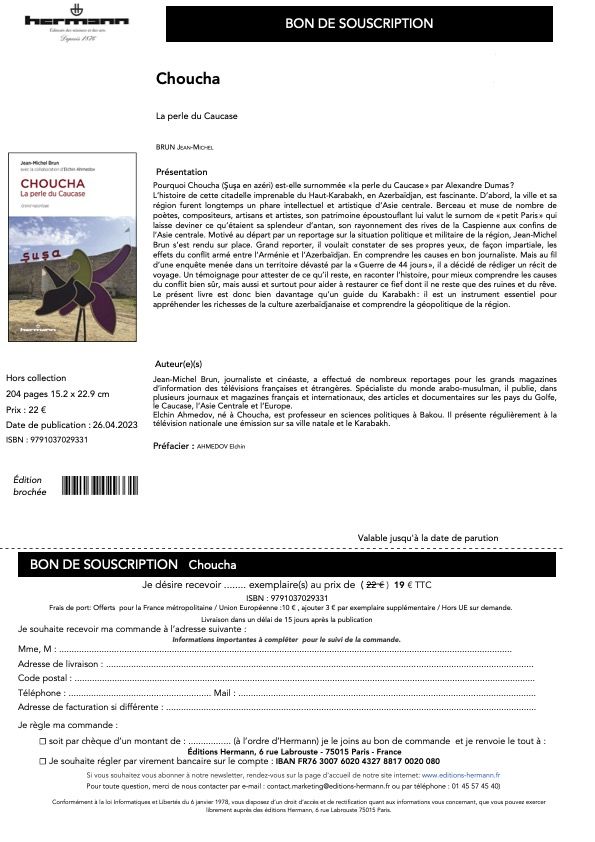 "CHOUCHA, LA PERLE DU CAUCASE". LE PREMIER LIVRE EN FRANÇAIS SUR LA VILLE DE CHOUCHA ET SUR LE CONFLIT DU CAUCASE