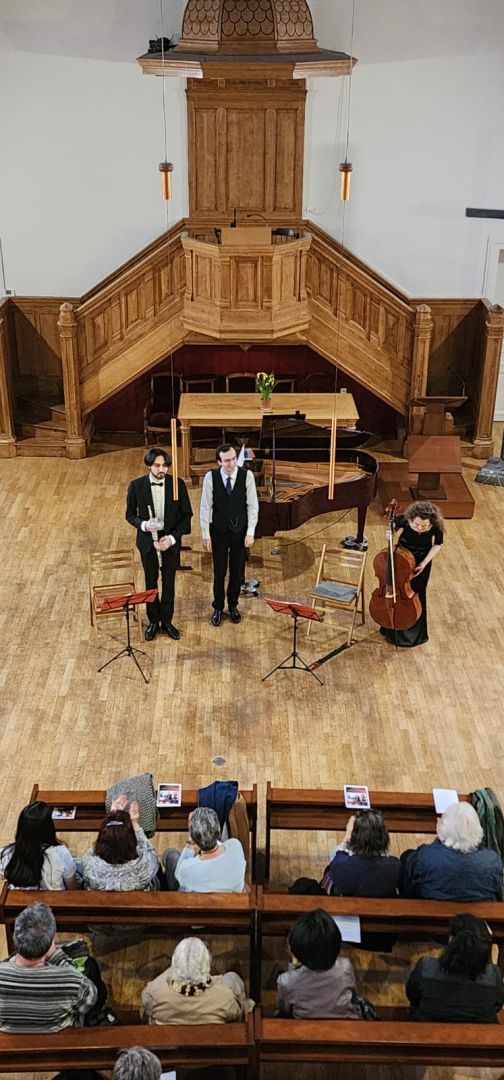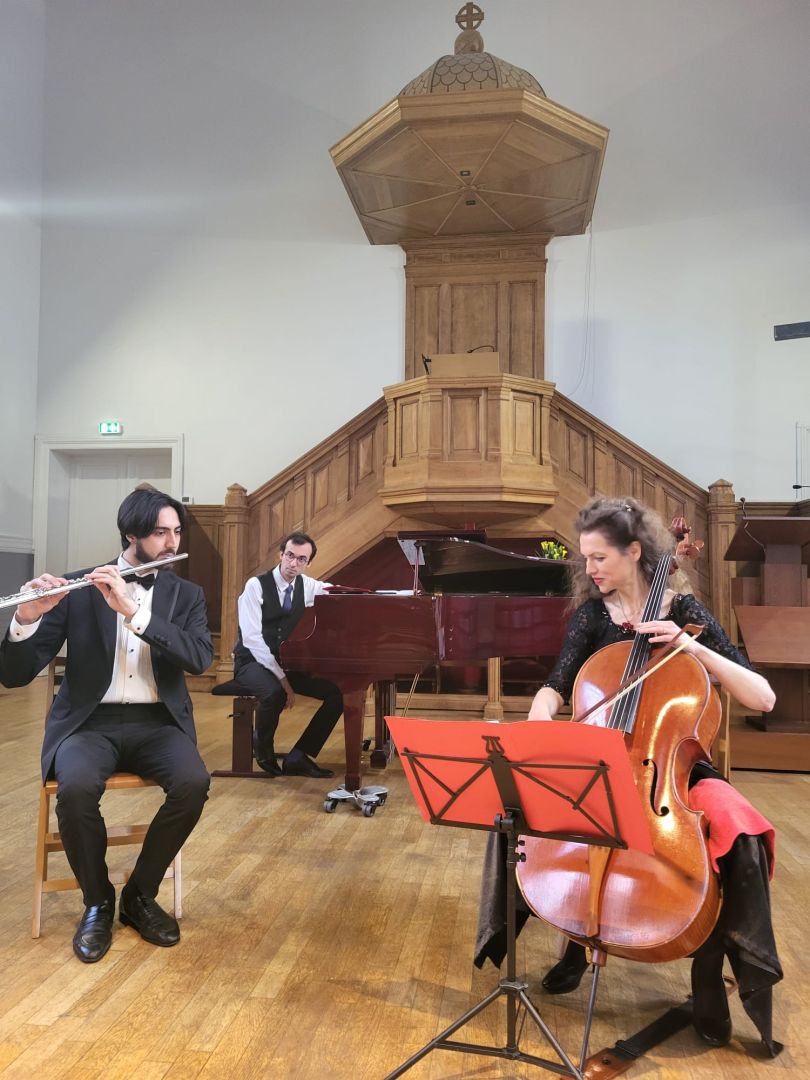 L'ensemble « Duo Avey », fondé par des musiciens azerbaïdjanais - le pianiste Eldeniz Alakbarzade et le flûtiste Agarahim Guliyev - a présenté son programme musical riche et harmonieux au public français. Cette fois-ci, ils ont été rejoints par leur fidèle collègue, la violoncelliste française Laura Volpato, qui est la soliste invitée de l'ensemble.