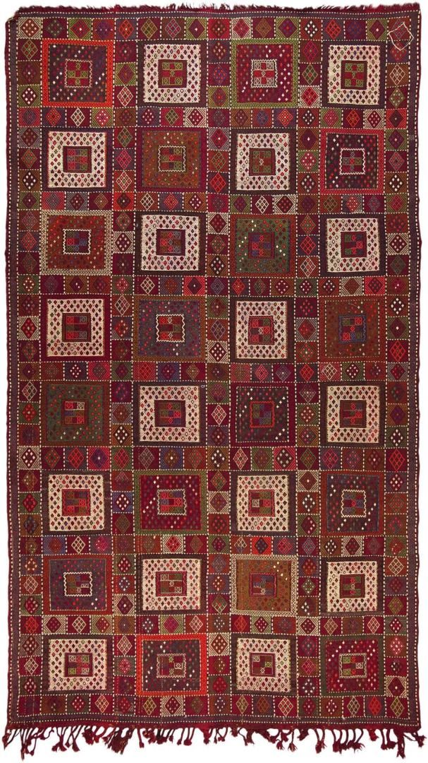 Le champ central de tels tapis est décoré de médaillons en forme de losange dentés, disposés de façon rythmique.