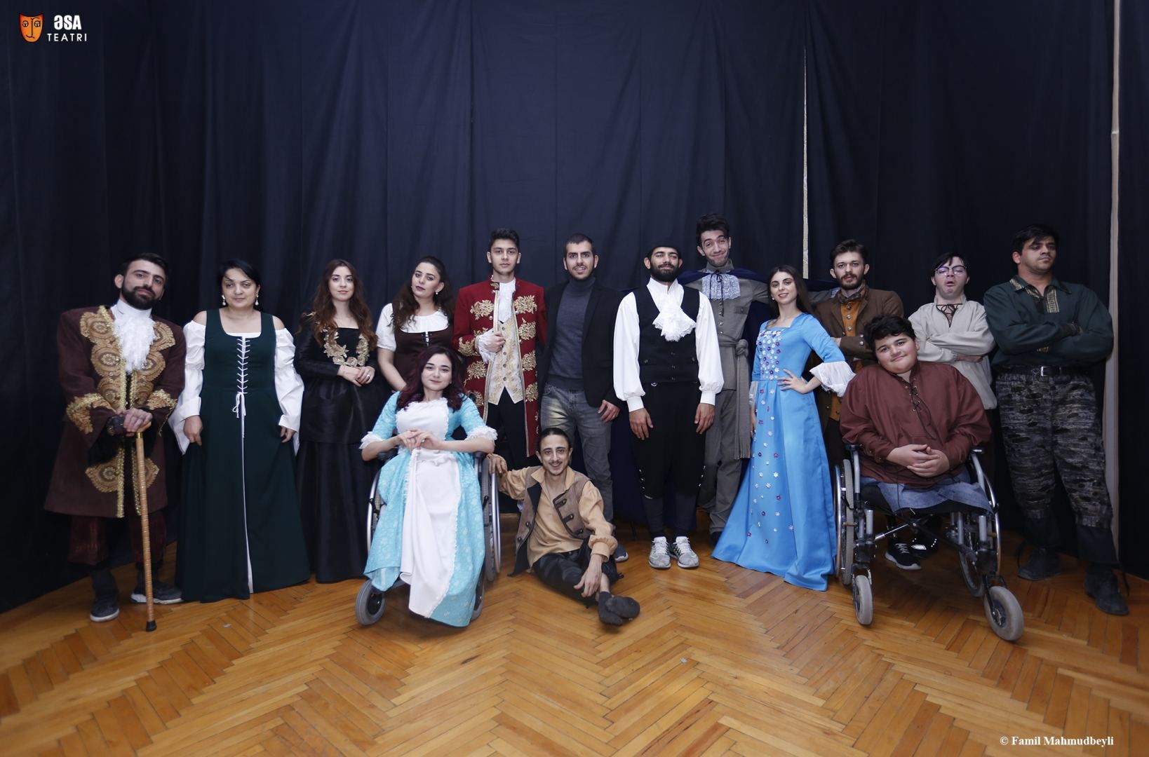 La troupe du théâtre, créée en septembre 2016, se compose principalement des acteurs à mobilité réduite. L'abréviation « ƏSA » signifie « əngəlsiz », « sərhədsiz », « azad » ( sans entrave, sans limites, libre). Une autre signification du mot est la canne. Le fondateur et directeur de ce théâtre inhabituel est Nihad Goulamzadeh.