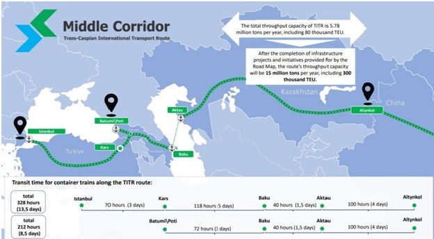 Les changements tectoniques dans la géopolitique eurasienne conduisent à la création de nouveaux itinéraires de transport. Parallèlement aux changements politiques, l'importance stratégique croissante du Middle Corridor et le lancement d'entreprises logistiques mondiales axées sur cette région montrent que les entreprises transnationales ont choisi ce corridor de transport comme priorité. Les sociétés transnationales évaluent les relations économiques avec les régions du Caucase du Sud et de l'Asie centrale du point de vue des relations de marché et, dans ce processus, ne cherchent pas à obtenir d'autorisations de la part des grands pays du monde.