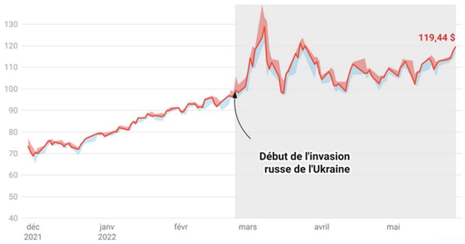 Évolution des prix du pétrole mondial dans le cadre de la guerre en Ukraine