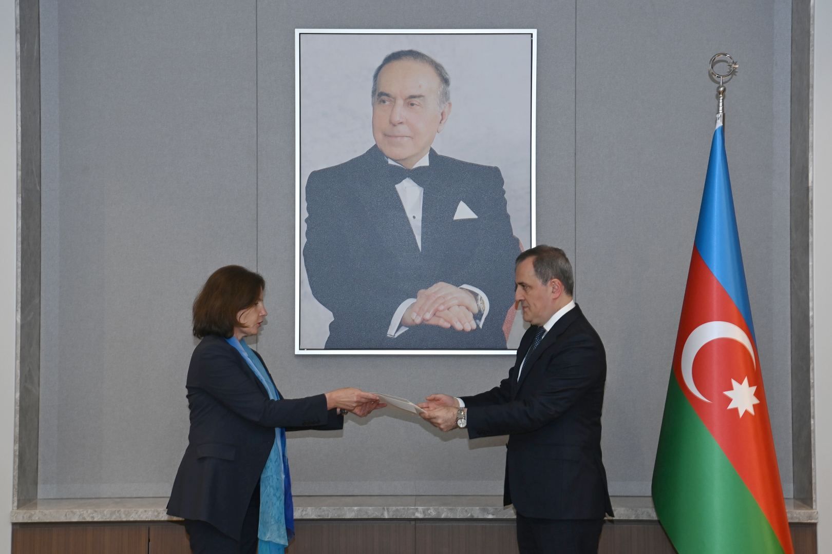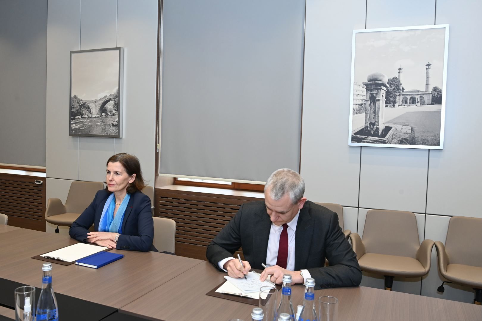 Le ministre Bayramov a reçu des copies des lettres de créance de l'ambassadrice Anne Boillon et lui a souhaité plein succès dans ses nouvelles fonctions.