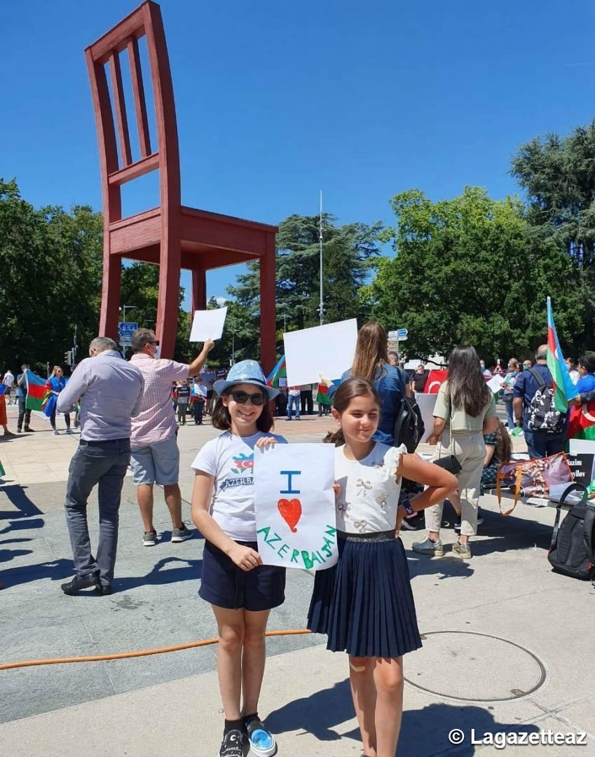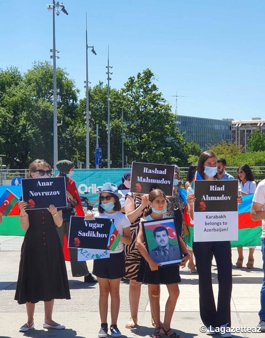 Fariza Ahmedova, fille du héros national de l'Azerbaïdjan Riad Ahmedov, a fait une déclaration devant le siège des Nations unies à Genève, rapporte Lagazetteaz.