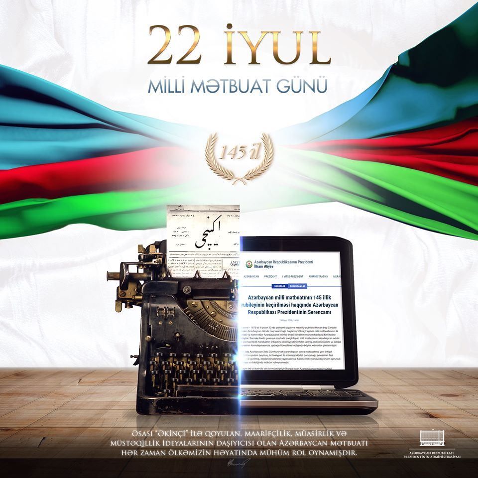 Une publication a été partagée sur la page Facebook du président de la République d’Azerbaïdjan, Ilham Aliyev, à l’occasion de la Journée nationale de la presse, célébrée le 22 juillet.