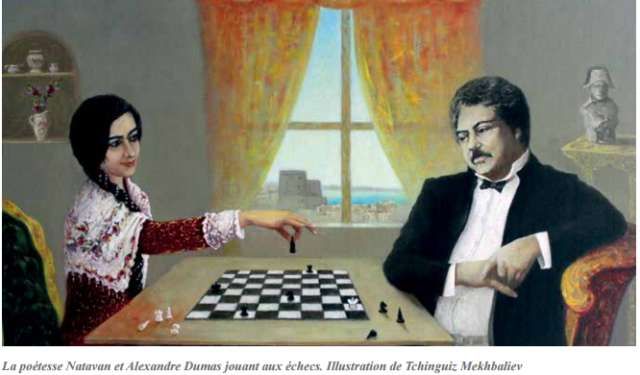 Cet événement fut immortalisé par le peintre Tchinguiz Mehbaliyev dans sa toile « Jeu d’échecs de Khourchidbanou Natavan et Alexandre Dumas ».