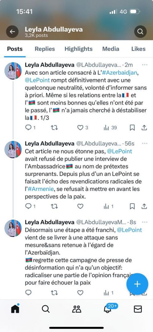 Et puisque nous sommes accusés de relayer la version azerbaïdjanaise des faits, laissons donc la parole à l’ambassadrice d’AzerbaÏdjan en France, Madame Leyla Abdullayeva, qui répond au Point sur X :