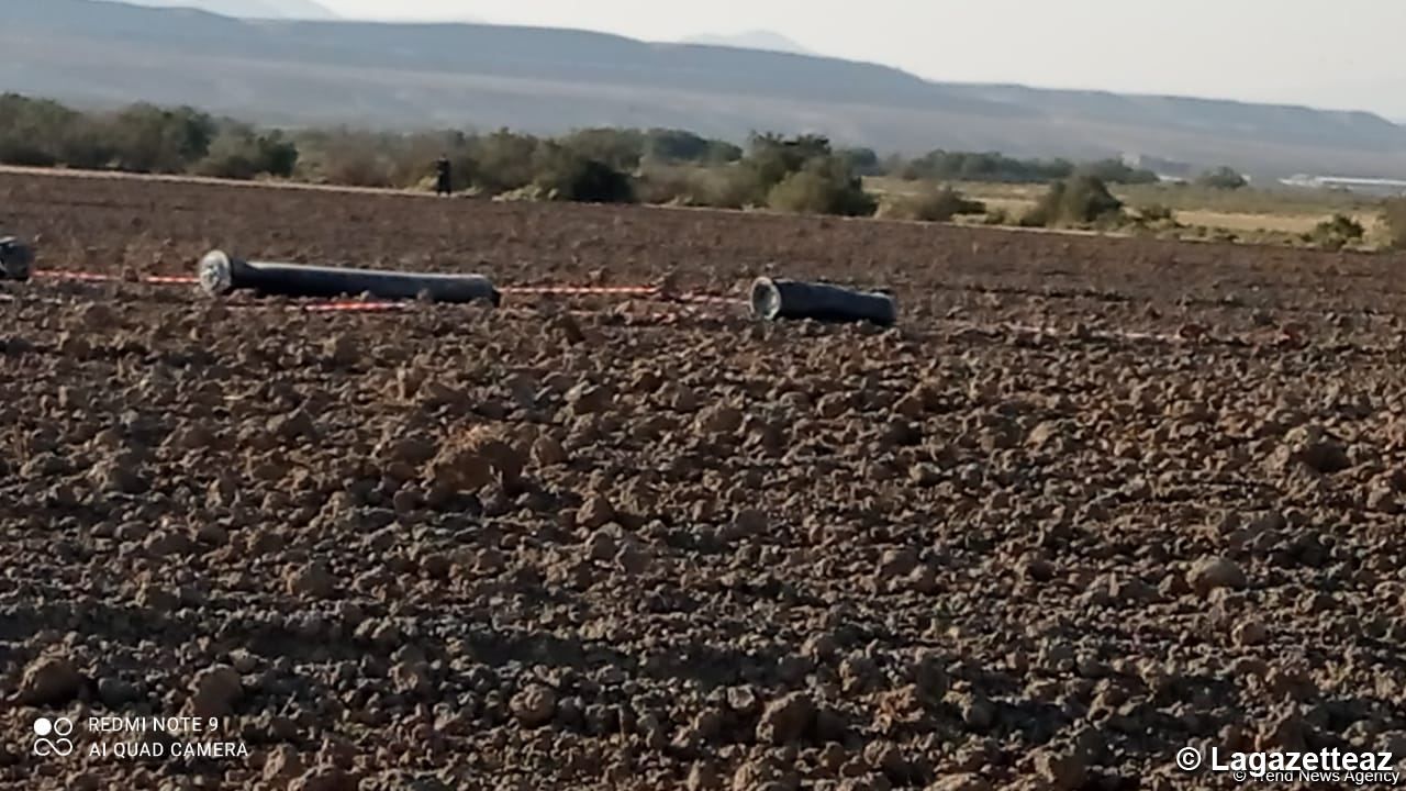 Comme indiqué, la roquette lancée par l'Arménie est tombée sur un champ vide d'une zone cultivée du village de Sitaltchay de la région de Khyzy.