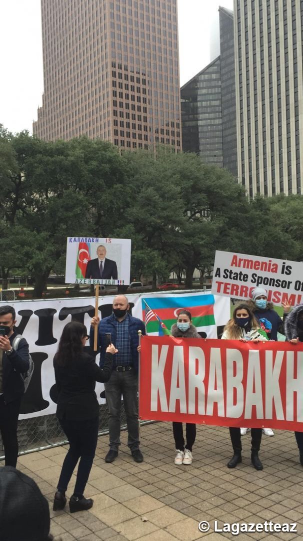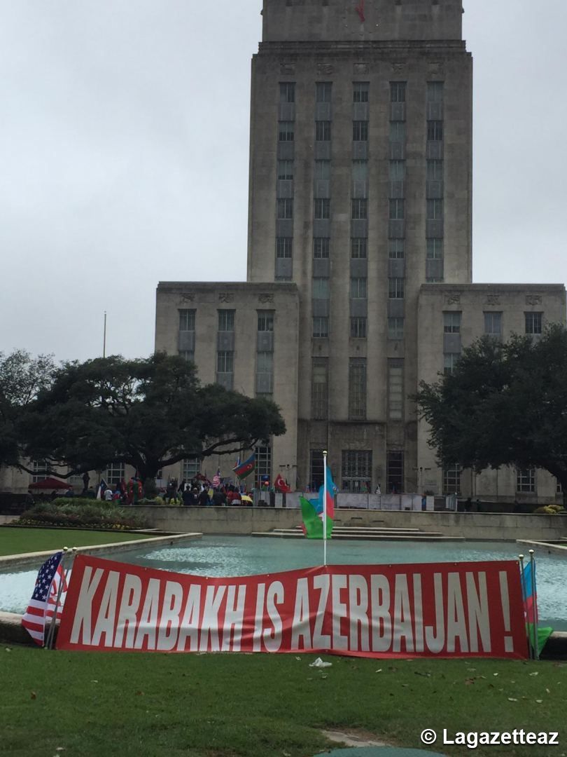 Les Azerbaïdjanais vivant dans la ville de Houston de l'État américain du Texas ont organisé une action autorisée devant la mairie de Houston pour informer la communauté mondiale des actes terroristes commis par l'armée arménienne dans les villes de Berdé et de Gandja, ainsi que dans d'autres localités d'Azerbaïdjan, a-t-on appris auprès du Comité d'État pour le travail avec la diaspora azerbaïdjanaise.