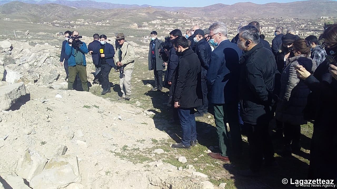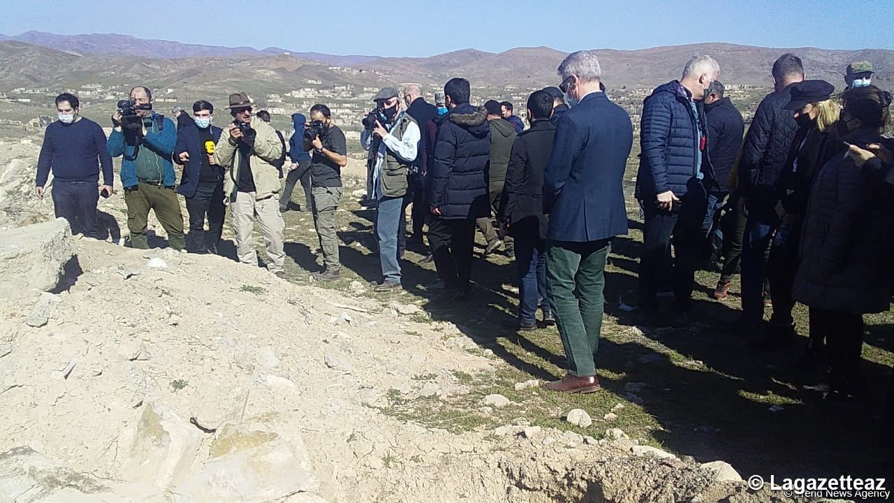 Des Ambassadeurs, des attachés militaires et des chefs de représentation d'organisations internationales en Azerbaïdjan, ainsi que le conseiller diplomatique du Président azerbaïdjanais, Hikmet Hadjiyev, et le conseiller diplomatique de la Première vice-présidente azerbaïdjanaise, Elchin Amirbayov, et d'autres fonctionnaires se sont familiarisés avec le cimetière détruit par les Arméniens dans le ville de Djabraïl.