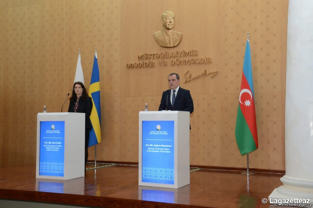 L'Azerbaïdjan remplit ses engagements pris en vertu de la déclaration trilatérale et a rendu tous les prisonniers de guerre à l'Arménie, a indiqué le ministre azerbaÏdjanais des Affaires étrangères, Jeyhun Bayramov, lors d'une conférence de presse conjointe tenue lundi 15 mars conjointement avec la présidente en exercice de l'OSCE et ministre suédoise des Affaires étrangères, Ann Linde, qui est en déplacement à Bakou.