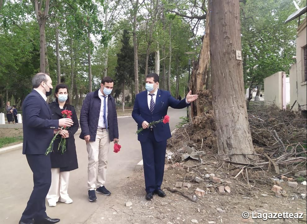 Accompagnés de responsables locaux, ils ont déposé des fleurs sur le territoire en hommage à la mémoire des personnes tuées par la terreur arménienne.