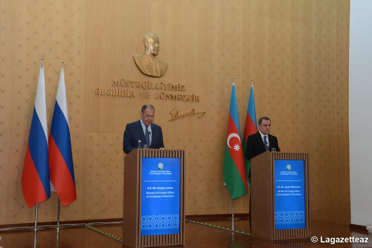 Bakou accueille une conférence de presse conjointe du ministre azerbaïdjanais des Affaires étrangères, Jeyhun Bayramov, et du ministre russe des Affaires étrangères, Sergueï Lavrov.