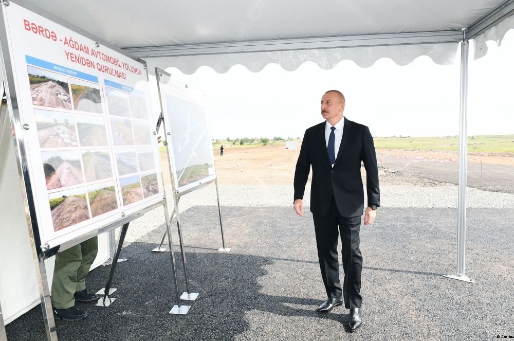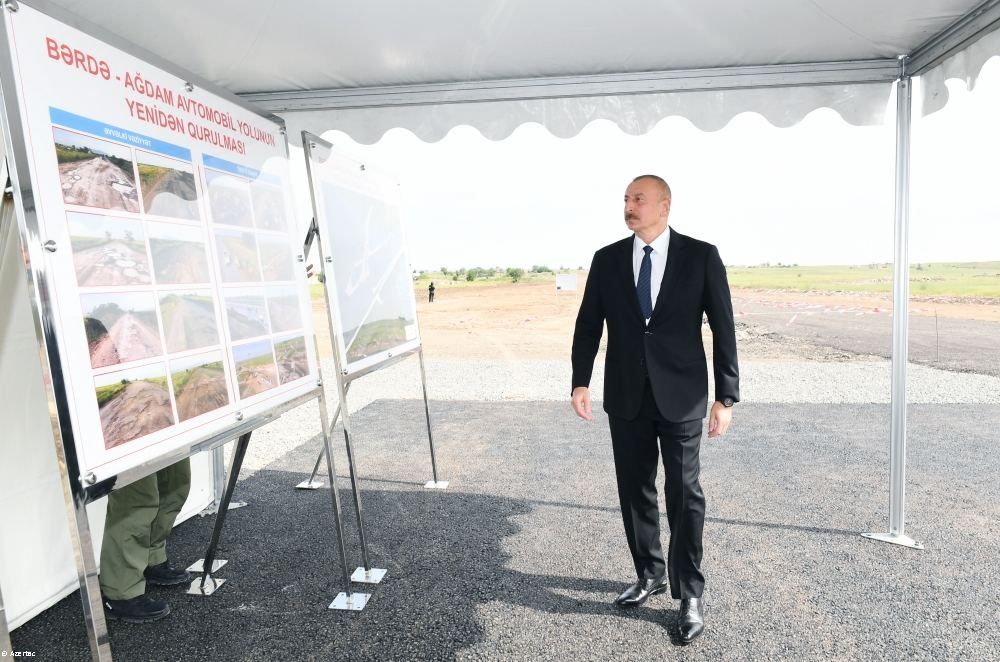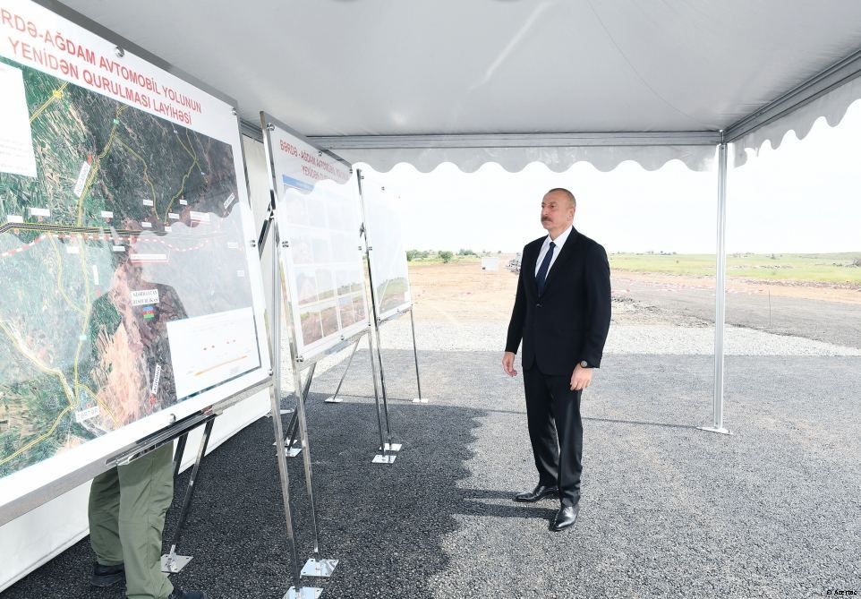 En marge de son déplacement, le président de la République a participé à la cérémonie de pose de la première pierre de la route Berdé-Aghdam.