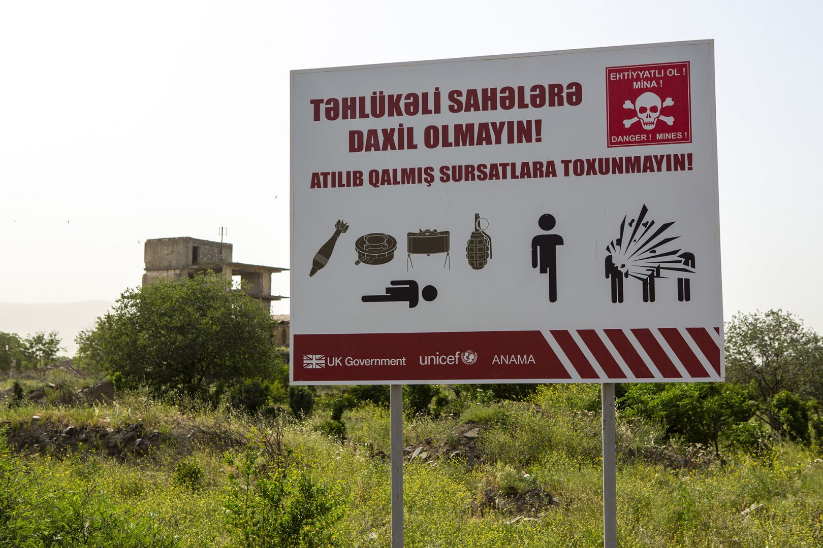 Sur 250 kilomètres de long et 5 km de large, la ligne de contact qui a constitué pendant presque trois décennies la dernière frontière artificielle entre les deux pays, a été l’une des zones les plus minées au monde. Uniquement sur la ligne de contact plus de 400 000 mines ont été posées uniquement dans cette zone ! C’est plus d’un million de mines qui ont été placées sur tout le territoire, souvent à l’intérieur même des ruines des maisons, afin de piéger ceux qui voudrait retrouver et reconstruire leur ancienne habitation, et ainsi dissuader les Azerbaïdjanais de revenir.