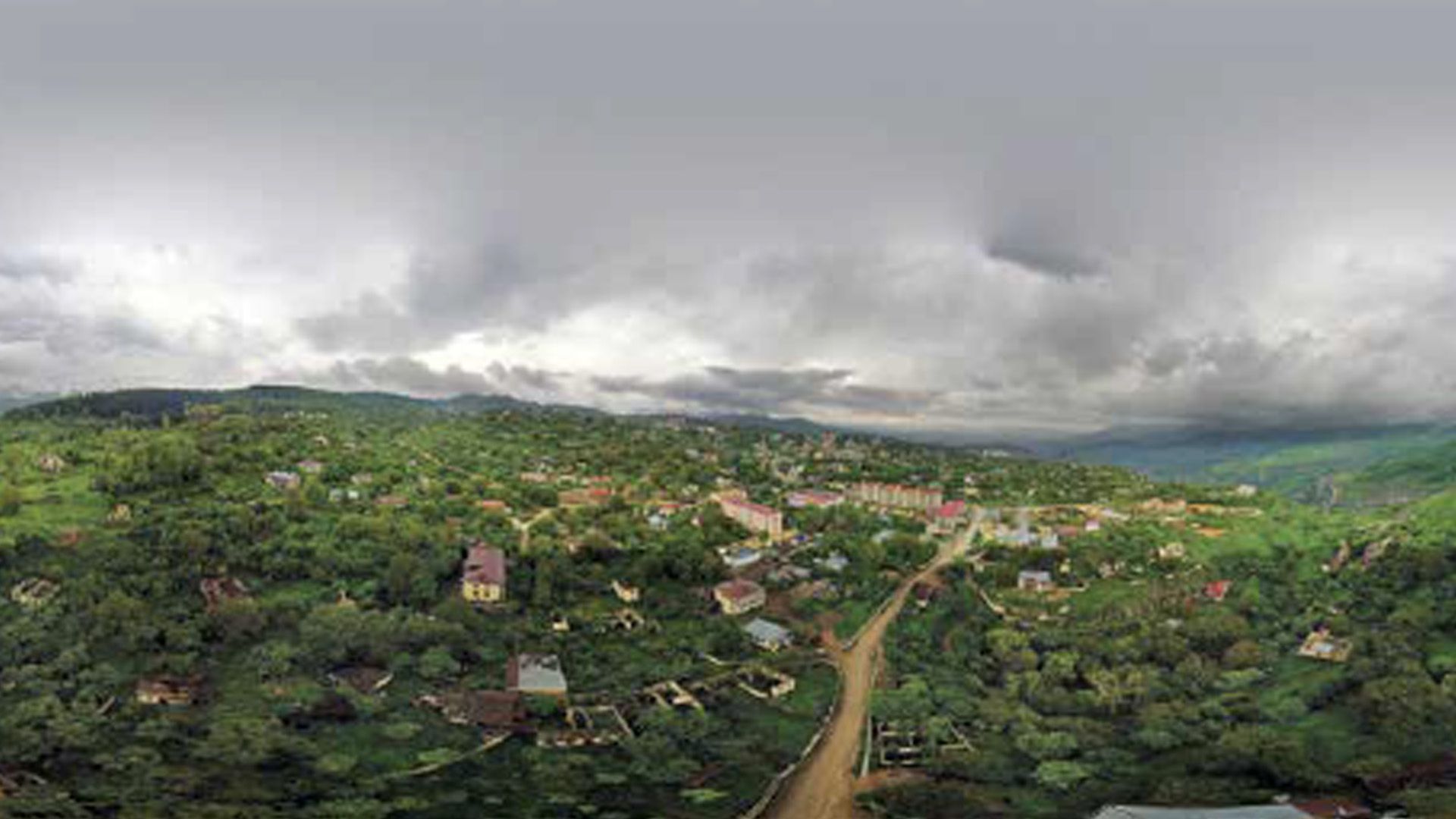 La ville, comme en attestent les photos prises à l’époque soviétique, était une très belle cité, avec de jolies maisons blanches, de coquettes places, un théâtre réputé, un musée du pain qui attirait de nombreux visiteurs, la fameuse « maison du thé » en forme de pagode, des écoles, un hôpital. Il n’en reste plus que des ruines. Pourtant, les destructions ne sont pas la conséquence de combats. La ville a tout simplement été dépecée, vandalisée par l’occupant arménien, pendant les trente années de sa présence au Karabakh.