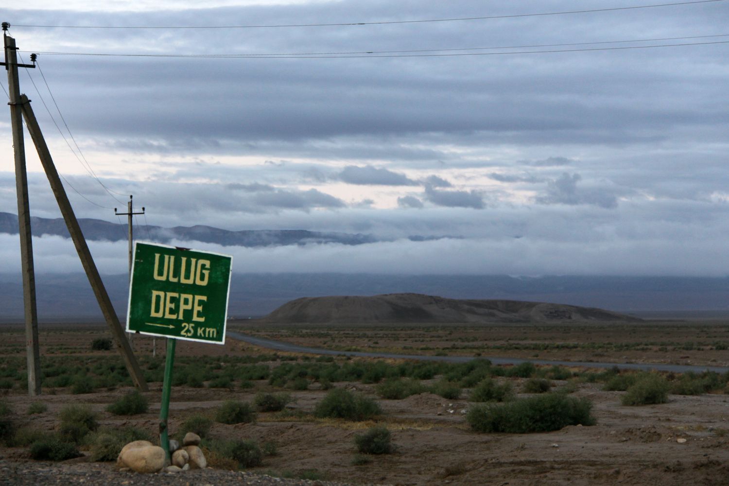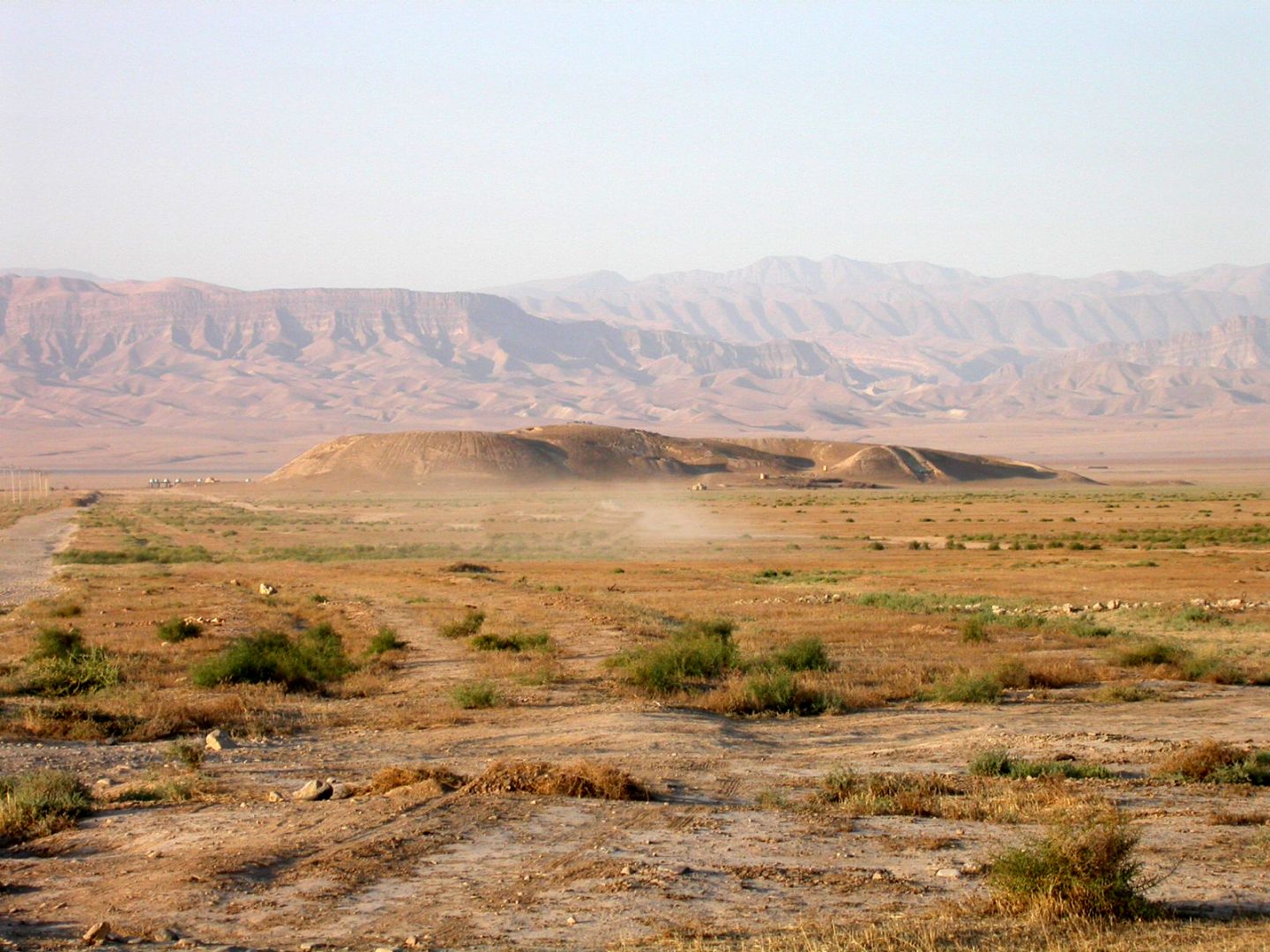Le site d'Ulug dépé avec le Kopet dag en arrière