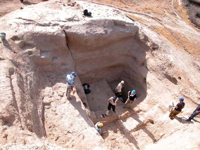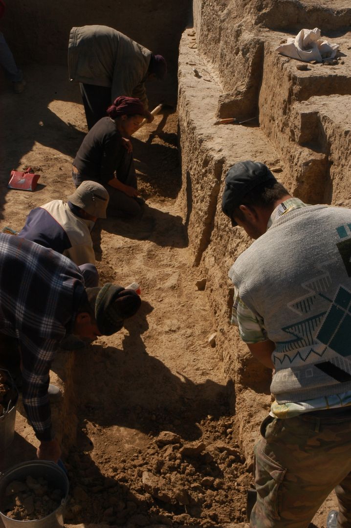 Durant les premières campagnes de fouilles (2001-2009), l’exploration s’est portée au sommet du site sur la fouille de la citadelle du début de l’âge du Fer moyen (période Yaz II, environ 1100-1000 à 600 avant notre ère.), très mal connu dans cette région d’Asie centrale. Cet établissement fortifié, de même que la ville basse qu’il domine à l’est, est unique de par sa surface d’occupation et l’histoire qu’elle renferme. Il y a donc là matière à définir précisément les caractéristiques culturelles de la période pré-achéménide ainsi que les modalités d’organisation politique des dirigeants autochtones dans cette région et au-delà. Nous avons découvert et fouillé plusieurs édifices monumentaux et domestiques, ainsi que des tronçons du mur d’enceinte et un réseau viaire associés à plusieurs portes d’entrées anciennes dans la ville.