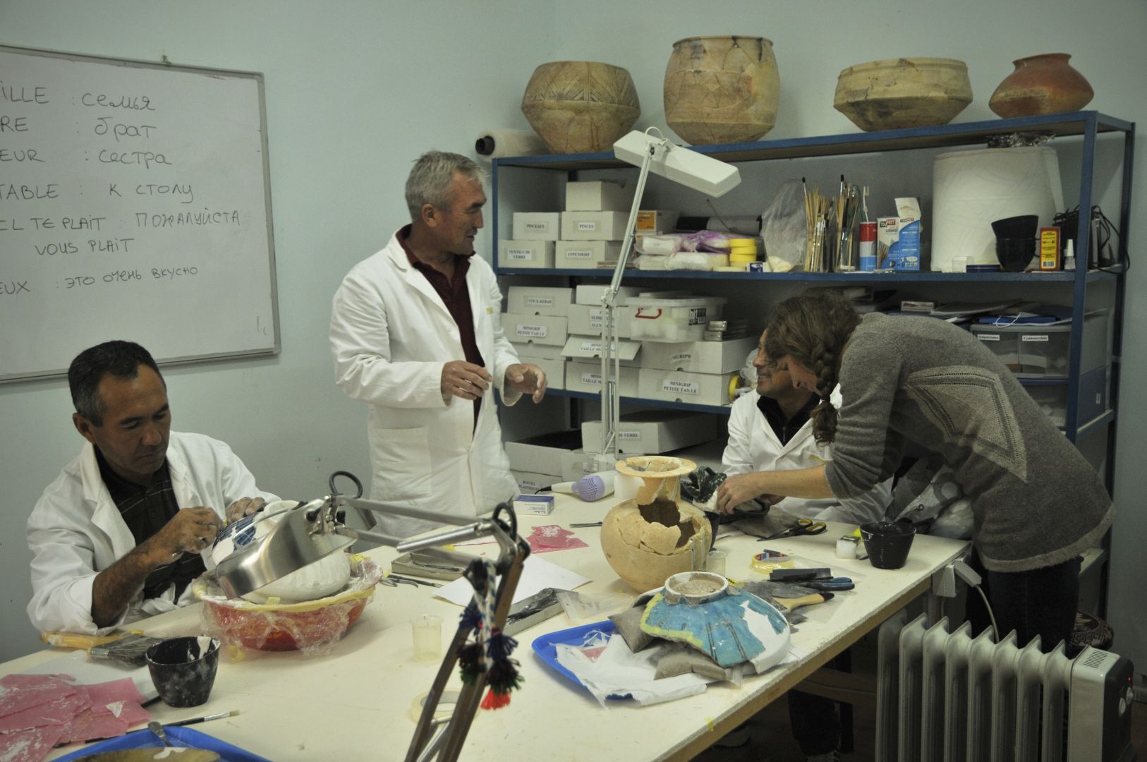 Le premier objectif est purement scientifique, car il ne faut pas oublier que le Turkménistan a joué un rôle majeur dans le développement des cultures sédentaires en Asie centrale. Ce rôle peut être comparé à celui de la terre d'Irak dans le développement du Croissant Fertile : un processus long et progressif qui a commencé au Néolithique a été observé près d'Achgabat sur le site de Djeïtoun au cours du 6ème millénaire. Par la suite, l’étude archéohistorique de la séquence stratigraphique de plusieurs millénaires sur le site d’Ulug-dépé est aujourd’hui une référence pour toute l'Asie centrale de la protohistoire aux périodes historiques. Le deuxième objectif prioritaire est la formation des générations futures d’archéologues turkmènes mais aussi internationaux. Certains chercheurs européens aujourd’hui en poste, dont moi-même, ont été formés à l’archéologie centrasiatique sur le site d’Ulug dépé. Ces dernières années aussi, grâce à la mise en place d’un laboratoire de restauration dans notre base archéologique à Dushak, nous avons pu organiser des stages de formation à la restauration des métaux mais aussi de la peinture et de la céramique. Notre principale découverte, la citadelle d’Ulug-dépé, a aussi bénéficié d’une conservation sur la brique crue qui a pu permettre la formation in situ de plusieurs restaurateurs turkmènes.