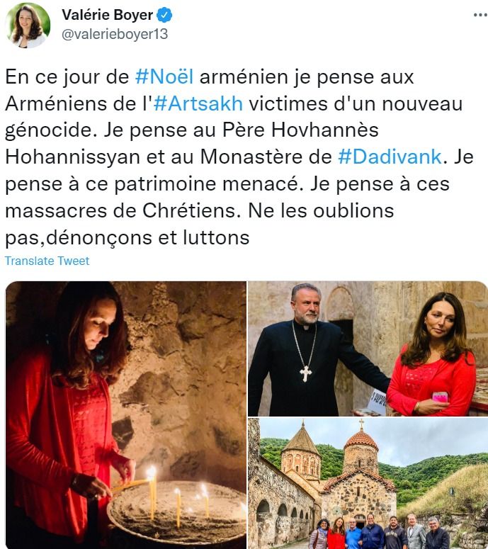 Tweet de la sénatrice française Valérie Boyer utilisant gratuitement le terme de « génocide » – 6 janvier 2021