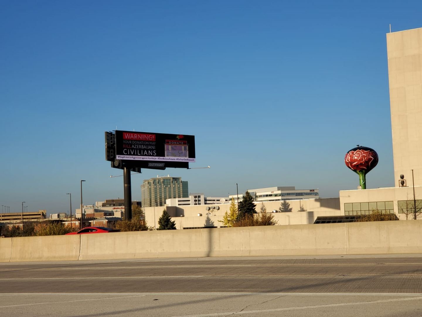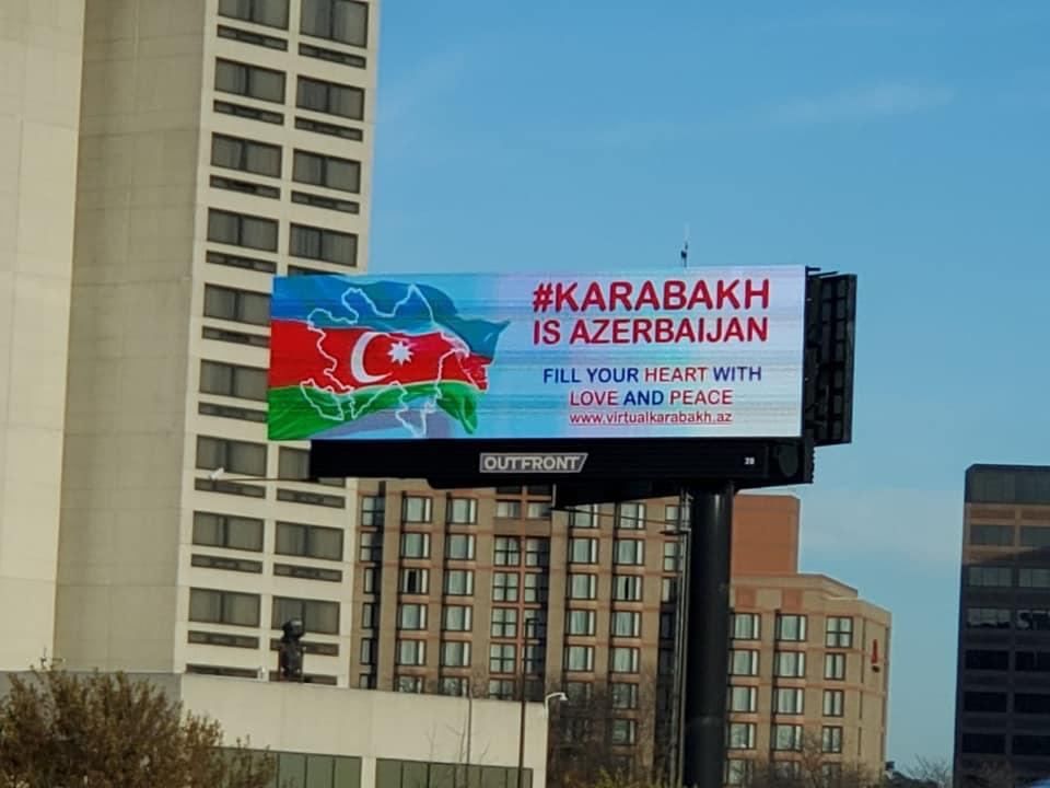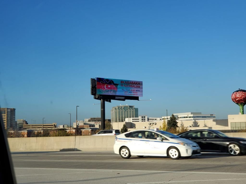 À l'initiative du Centre azerbaïdjanais pour les États du centre-ouest des États-Unis et avec le soutien du Comité d'État pour le travail avec la diaspora de la République d’Azerbaïdjan, un panneau à l'image du drapeau azerbaïdjanais et du slogan « Le Karabagh, c’est l'Azerbaïdjan » a été installé sur les routes centrales de l'État américain de Chicago.