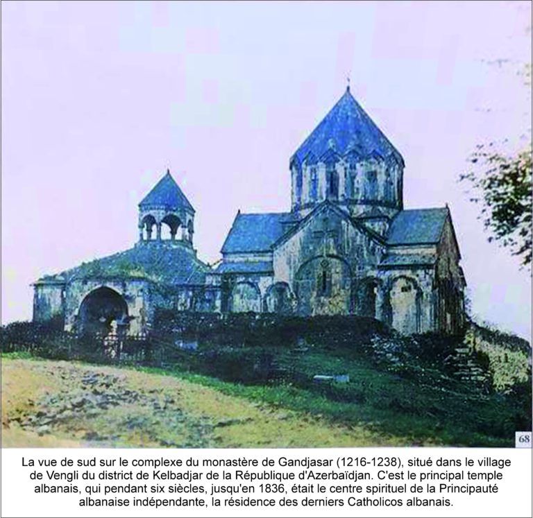 La destruction (ou la dissimulation) d’archives a permis aux historiens et archéologues arméniens de nier la nature autocéphale de l’Église albanienne, l’appartenance albanienne des temples, monastères et églises chrétiens situés sur le territoire de l’actuelle région du Karabagh, et de prétendre qu’ils sont le patrimoine culturel du peuple arménien et la propriété de l’Église arménienne. À cet égard, les scientifiques arméniens accordent une attention particulière au principal site culturel de la région du Karabagh – le monastère de Gandjasar, en le présentant à tort comme arménien. Malheureusement, la presse française se fait l’écho aujourd’hui de ces conclusions erronées des scientifiques et des politiciens arméniens.