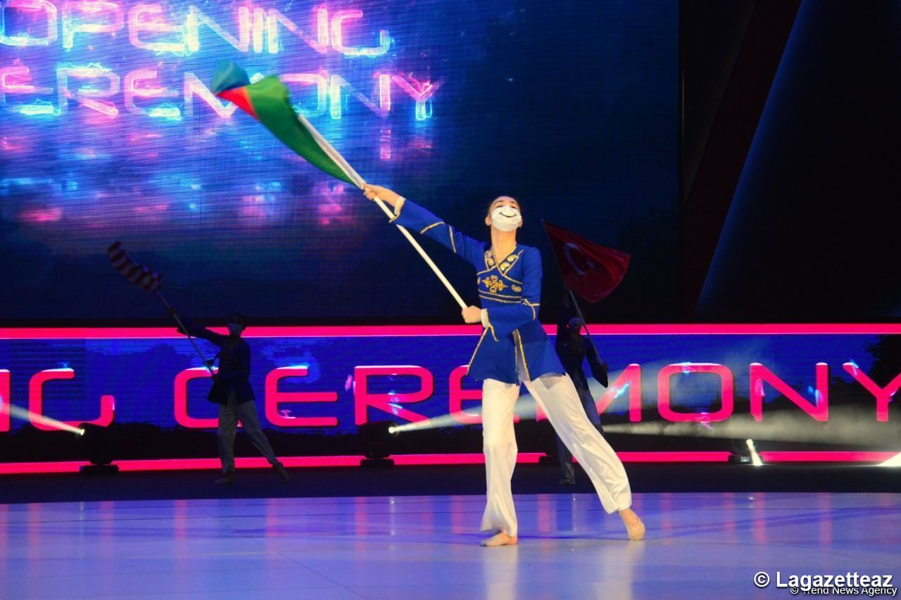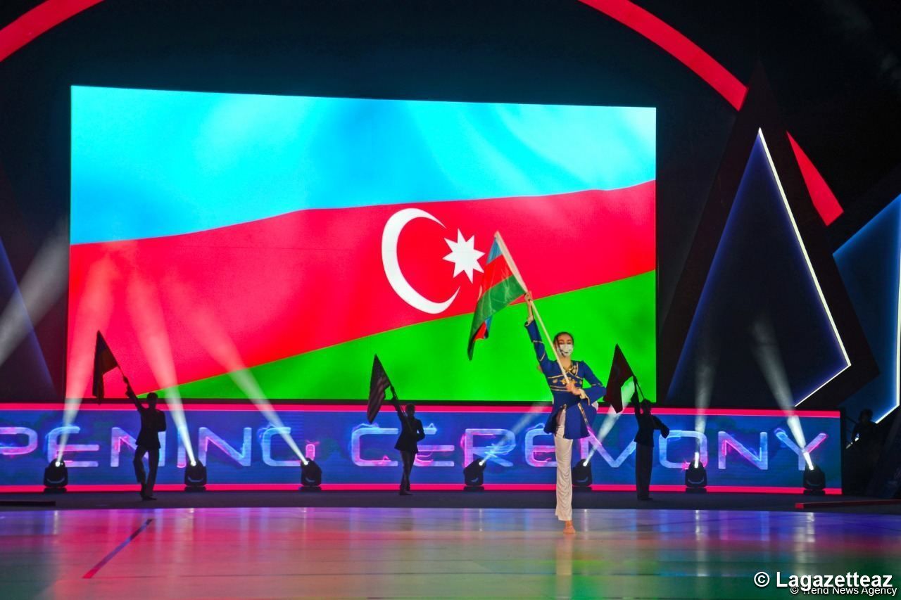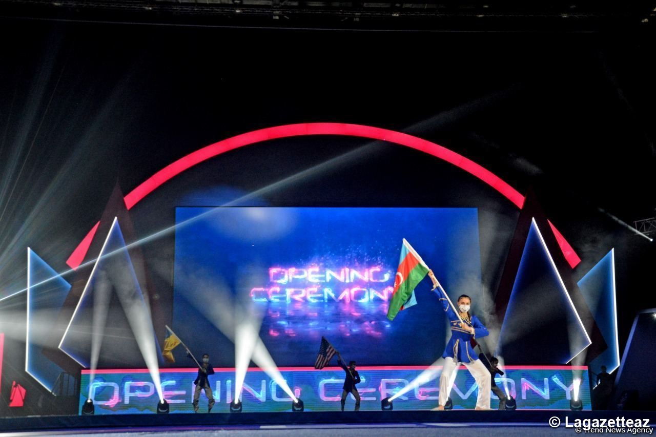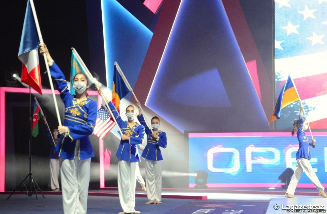 La cérémonie d'ouverture des 9èmes compétitions mondiales par groupe d'âge de gymnastique aérobic a eu lieu à l'Arène nationale de gymnastique de Bakou (capitale de l'Azerbaïdjan) ce 21 mai.