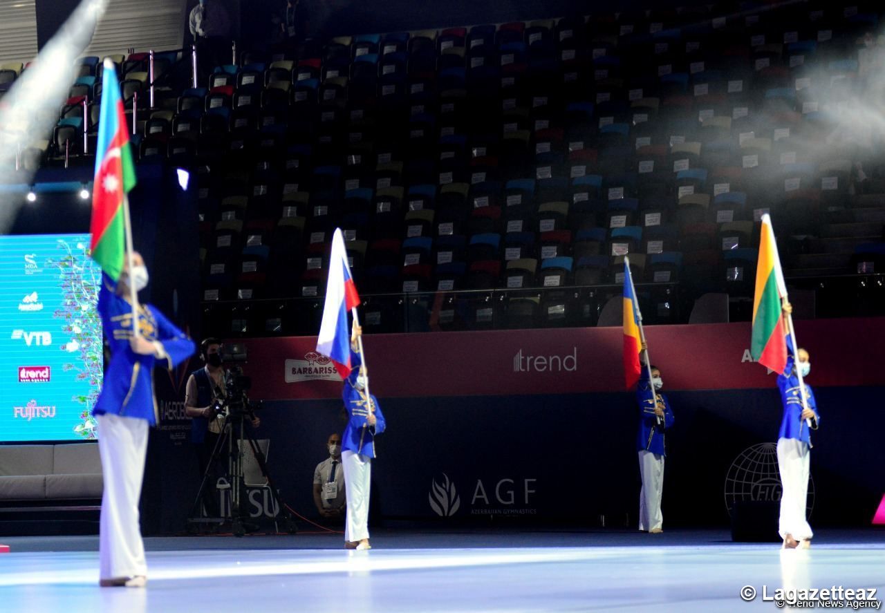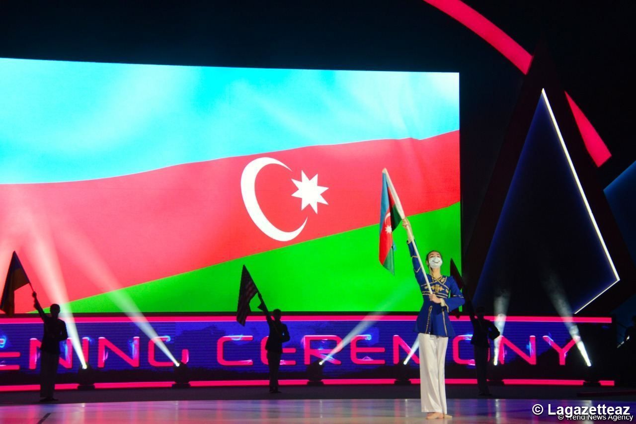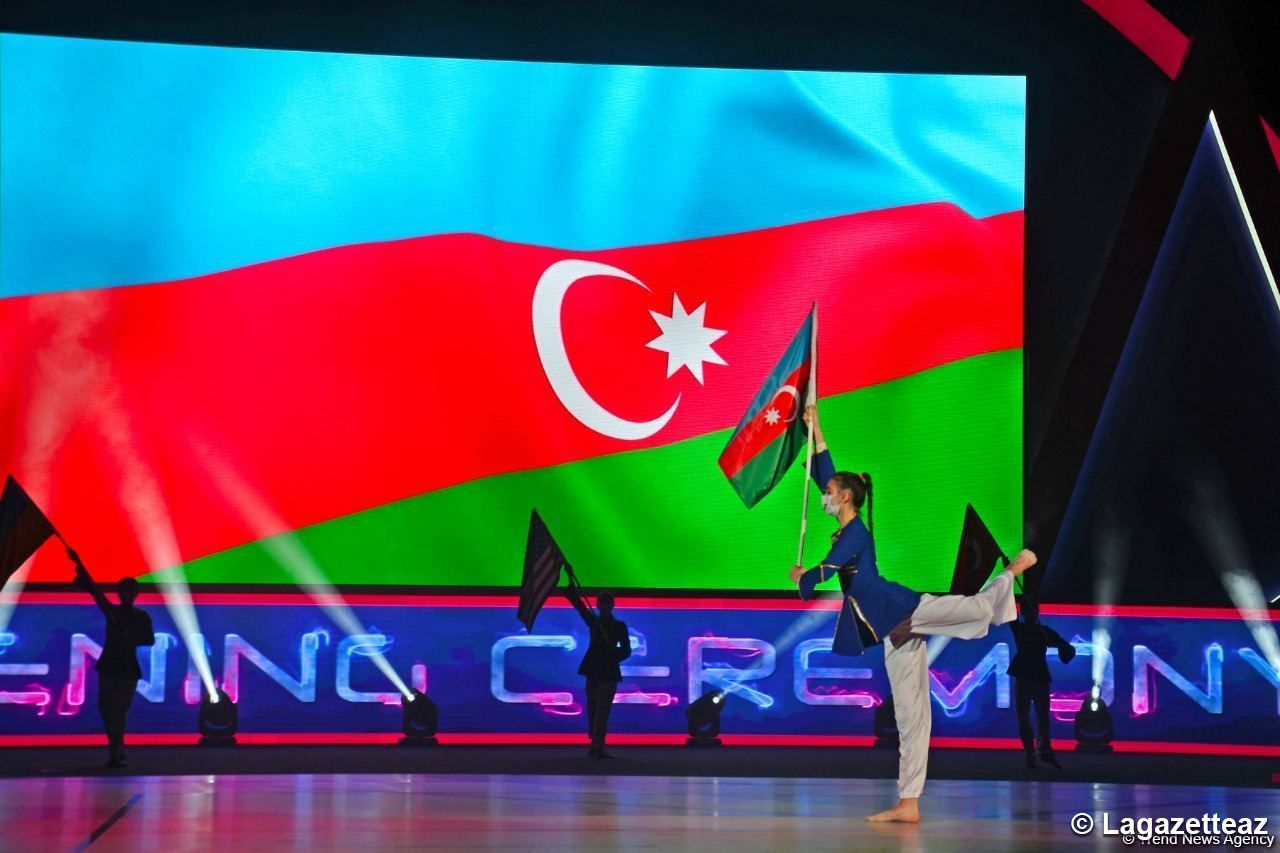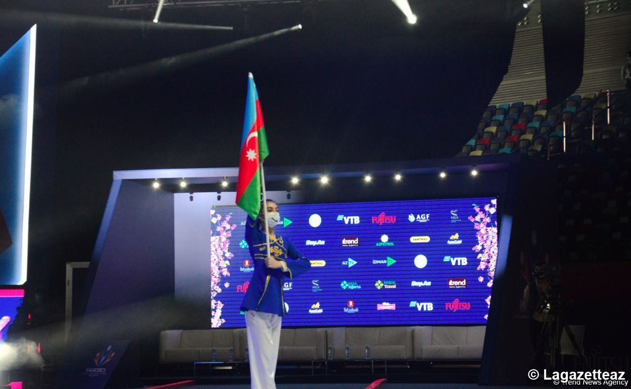 La cérémonie d'ouverture des 9èmes compétitions mondiales par groupe d'âge de gymnastique aérobic a eu lieu à l'Arène nationale de gymnastique de Bakou (capitale de l'Azerbaïdjan) ce 21 mai.
