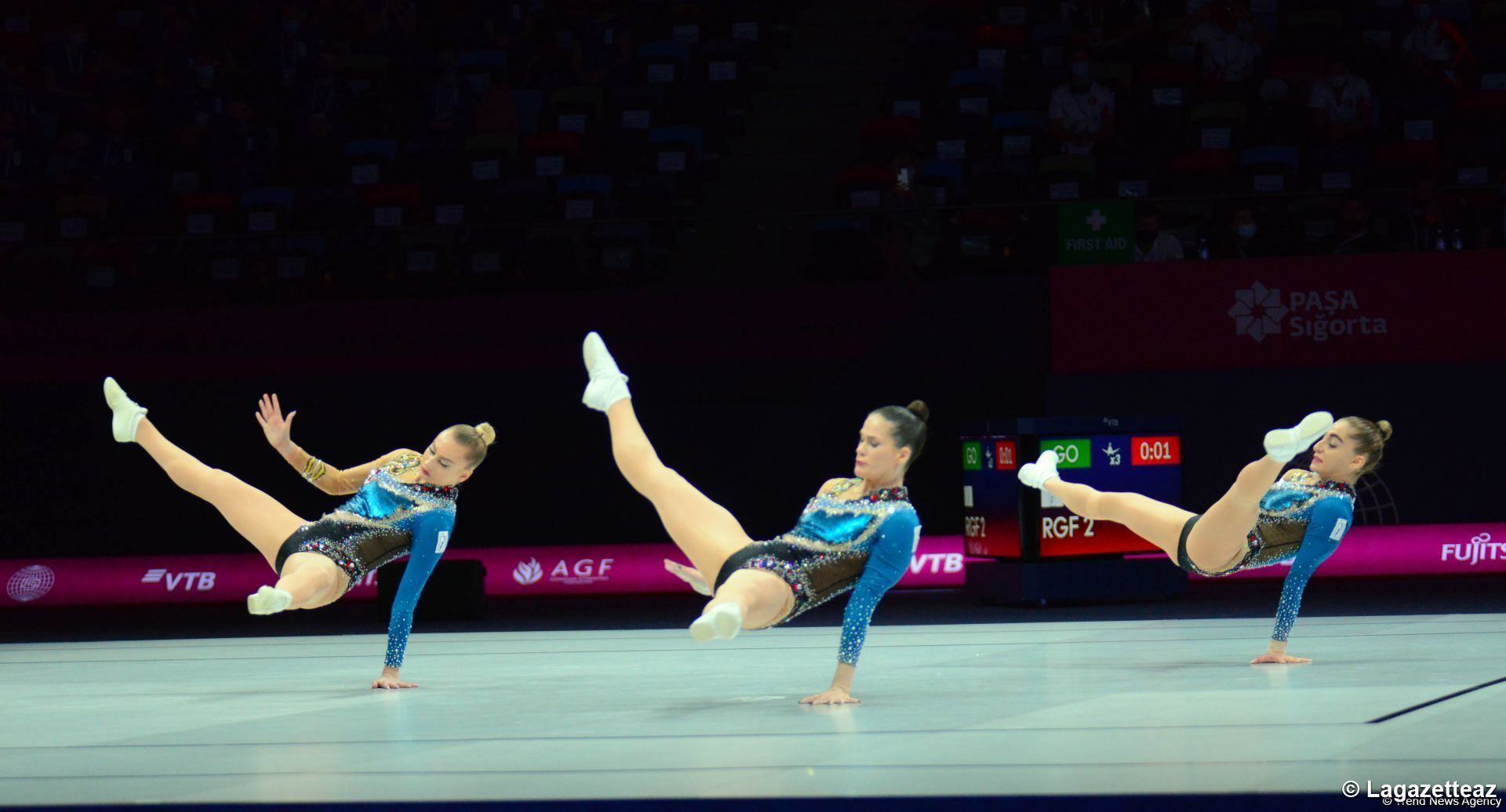 Jeudi 27 mai, le premier jour du 16e championnat du monde de gymnastique aérobic s'est déroulé à l'Arène nationale de gymnastique de Bakou.