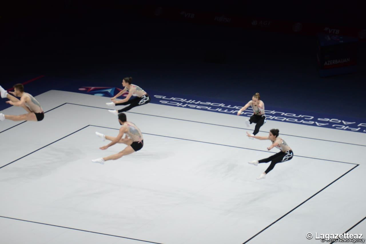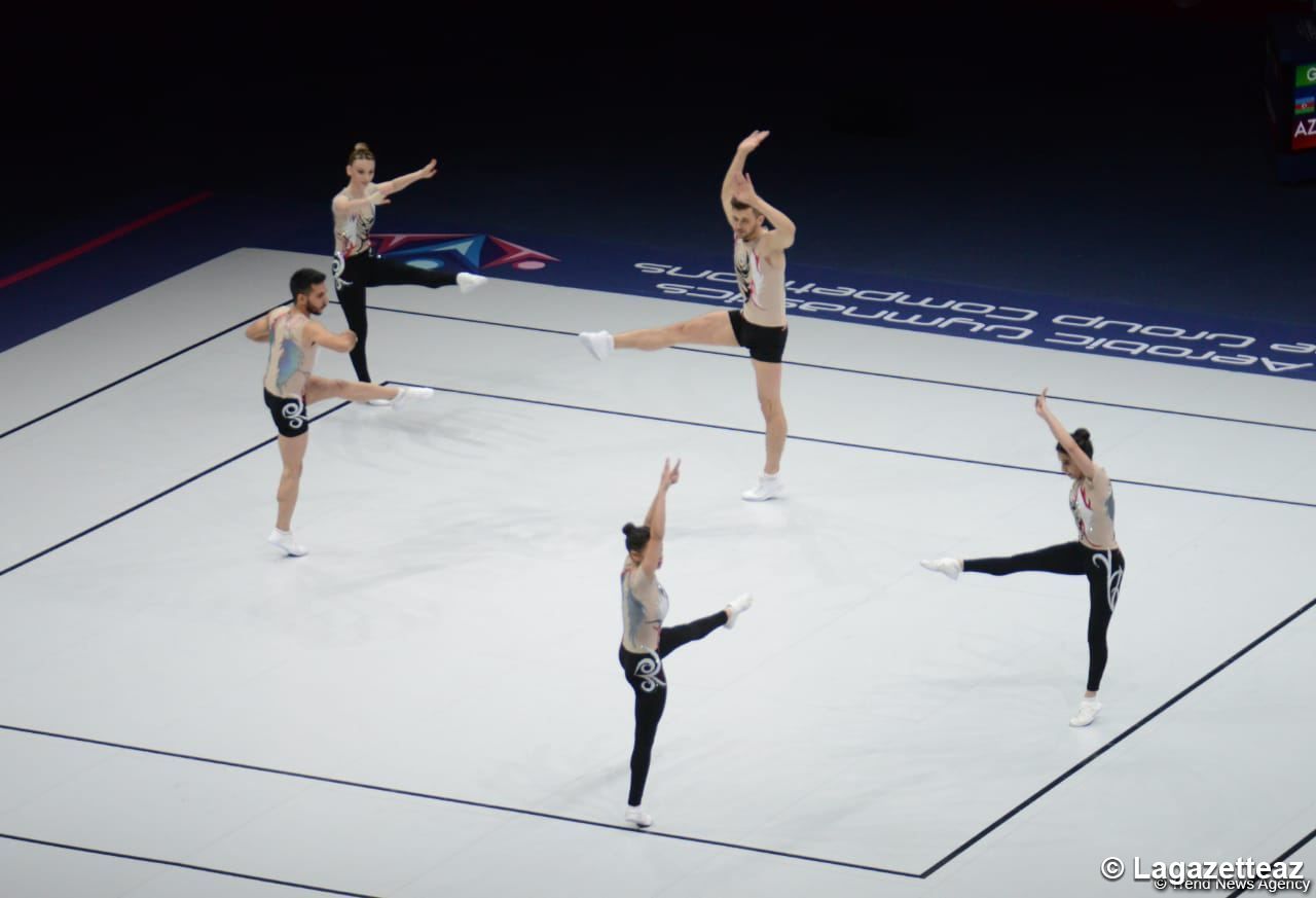 Une autre équipe azerbaïdjanaise, composée de Vladimir Dolmatov, Imran Imranov, Balakhanim Ahmedova, Khoshgadyam Guliyeva et Narmina Huseynova, avec un résultat de 19.761 points, s'est qualifiée pour les finales du championnat du monde de gymnastique aérobic à Bakou parmi les groupes.