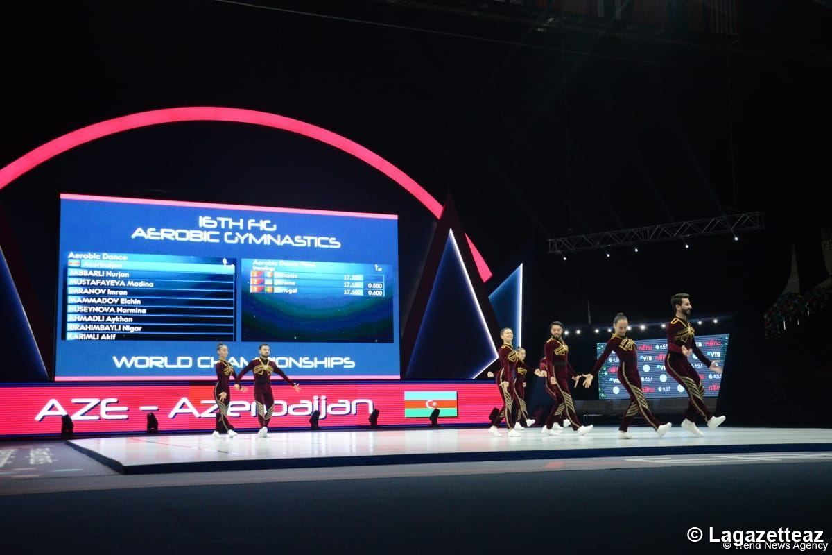L'équipe azerbaïdjanaise a remporté la médaille d'or au 16e championnat du monde de gymnastique aérobique à Bakou dans le programme d'aérodance avec un score de 18 400 points.