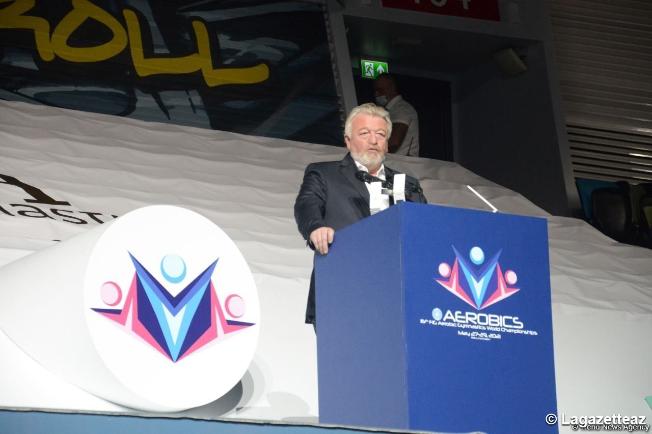 Au nom de la Fédération internationale de Gymnastique, je tiens à exprimer ma profonde gratitude à l'État azerbaïdjanais pour son grand soutien dans l'organisation d'un championnat sûr et réussi. Merci beaucoup pour votre généreuse hospitalité », a-t-il remercié.